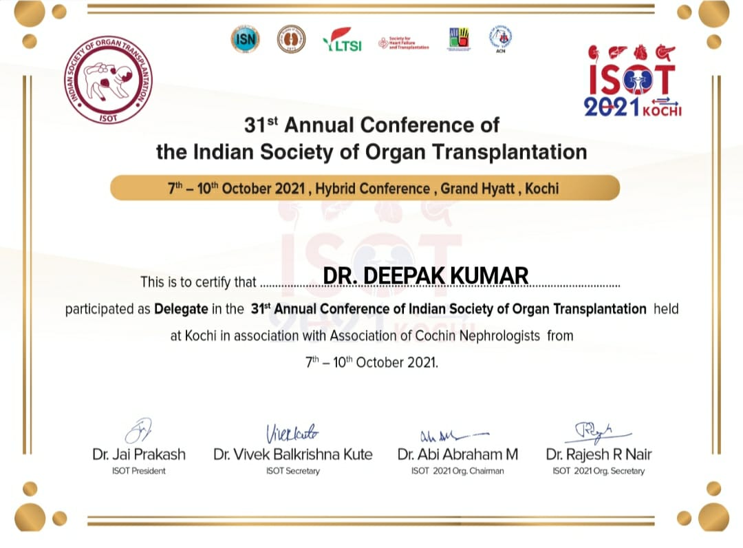 Dr. Deepak Kumar (MBBS, MD, DM) is a well known Consultant-Nephrology. He is having extensive clinical experience in living and deceased donor kidney transplants. Get health updates and learn about new research and experience in Nephrology with this website.
